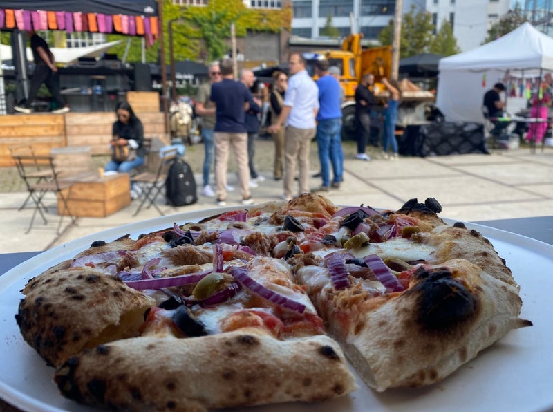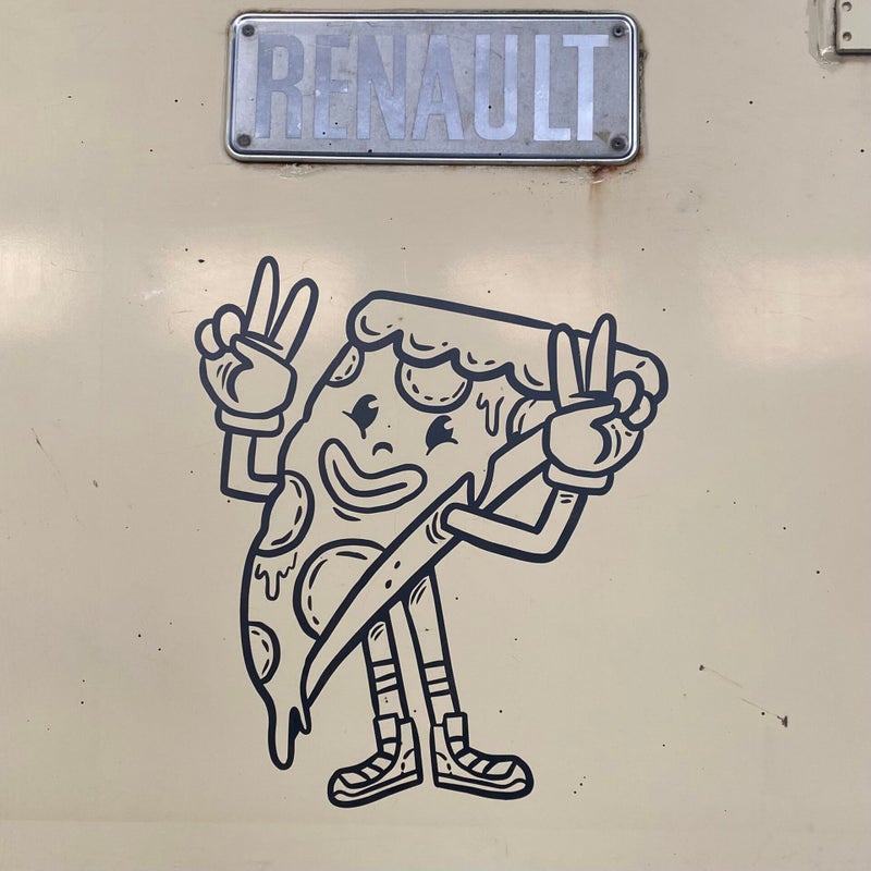 We maken de pizza's in een prachtige Renault estafette Foodtruck.,